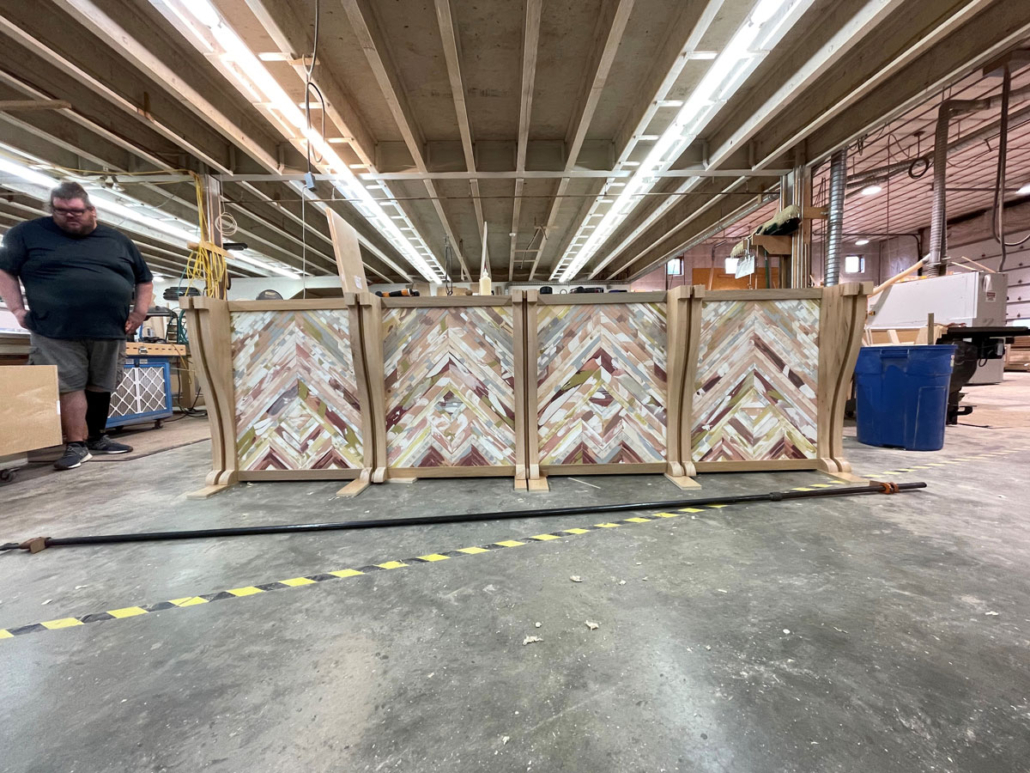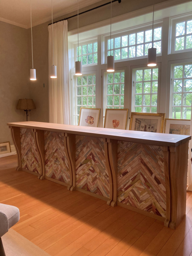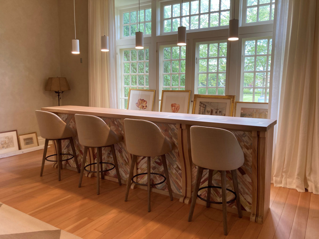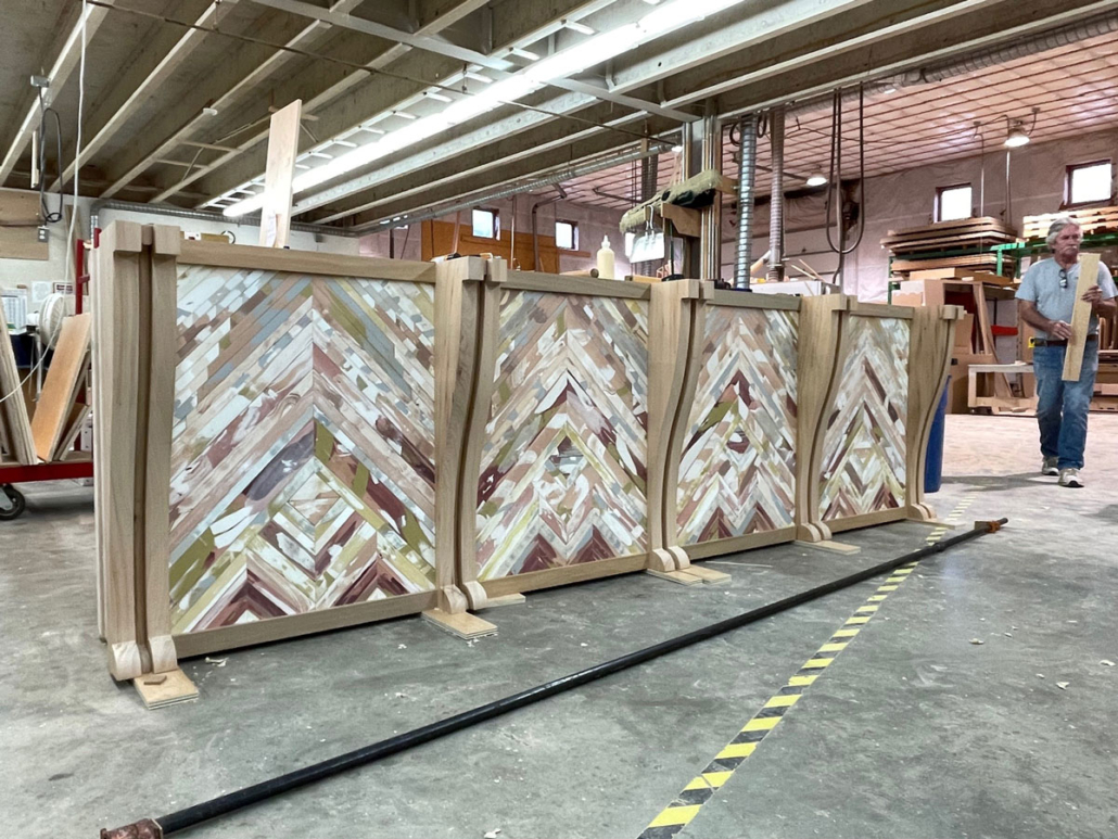 We aren’t in Kanas anymore, this is a bar design of different color, a lot of colors. Charlotte Campbell of British Columbia was commissioned by architect John Ike to hand-paint the River-Recovered® Heart Cypress parlay panels. One could easily be bewitched by its beauty and style. So pull up a stool and taste your favorite liquid courage. This project was completed by Robert A Baird & Associates.