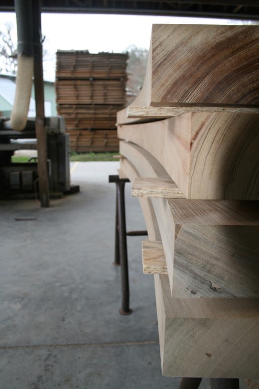 Take a look at these beautiful, precision milled sinker cypress boards. We used them to construct nine benches for Bok Tower Gardens. We cut sinker cypress logs on a radius to create a unique look. The benches will be arranged along a large circular walkway in between the new children’s interpretive center and demonstration kitchen; both of which are clad with our River-Recovered® Heart Cypress siding.