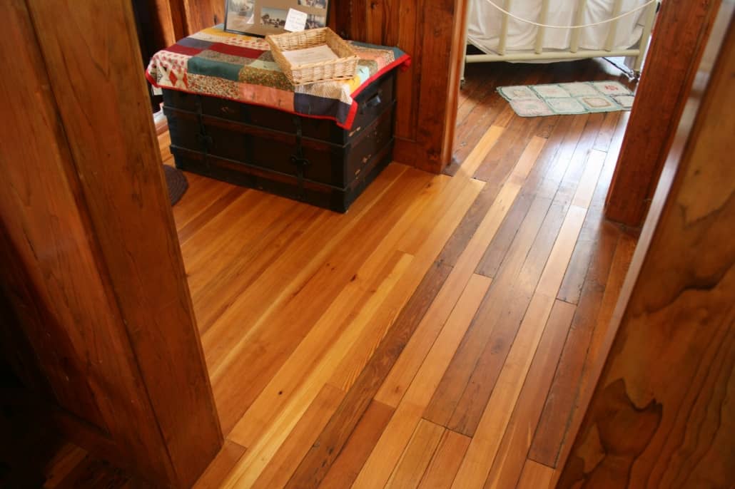 Antique River-Recovered and reclaimed heart pine flooring feature the same tight graining and resinous heartwood as the original virgin growth heart pine flooring that was often used in the construction of historic buildings. The color of the wood will not immediately match, but exposure to light will darken the patina over time. Eventually, the woods become nearly indistinguishable.