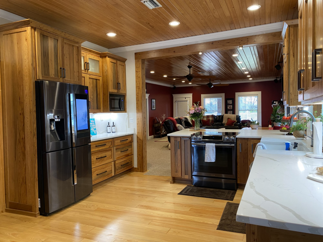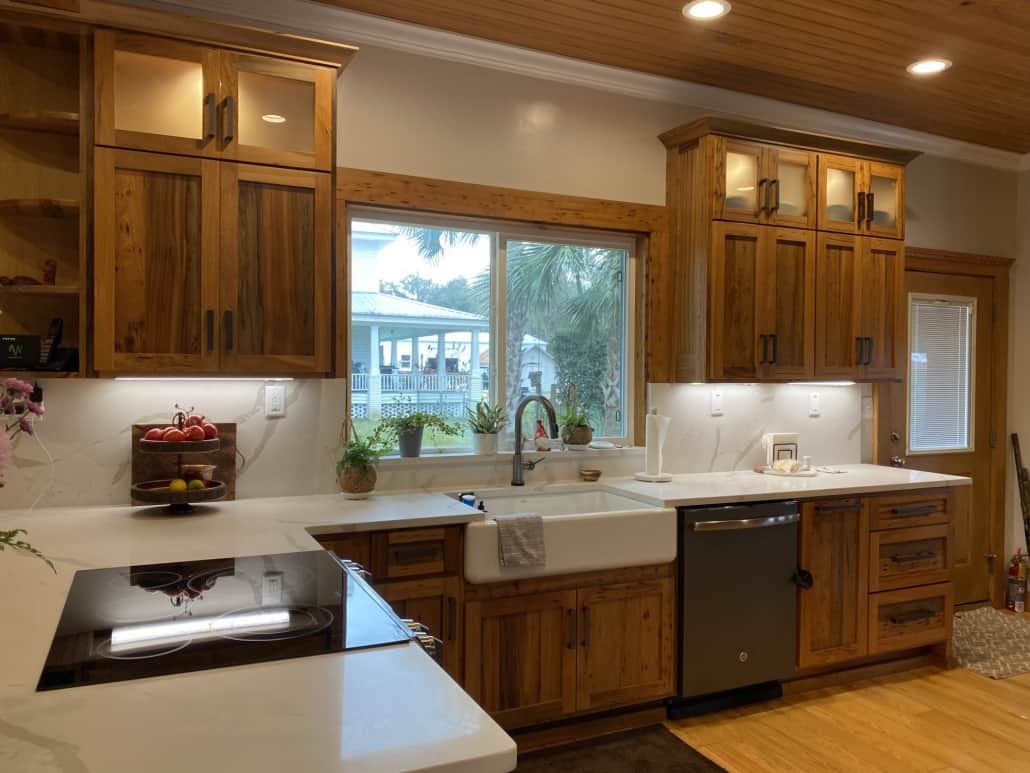 River-Recovered® Heart Cypress Character shines equally bright both indoors and outdoors. Our dear friend Chad Cordwin at Cordwin Tree Service, Inc. had his kitchen cabinets crafted using Heart Cypress Character with a bird’s eye grain. The cypress colors and textures lend this space the warm, inviting glow a kitchen deserves.