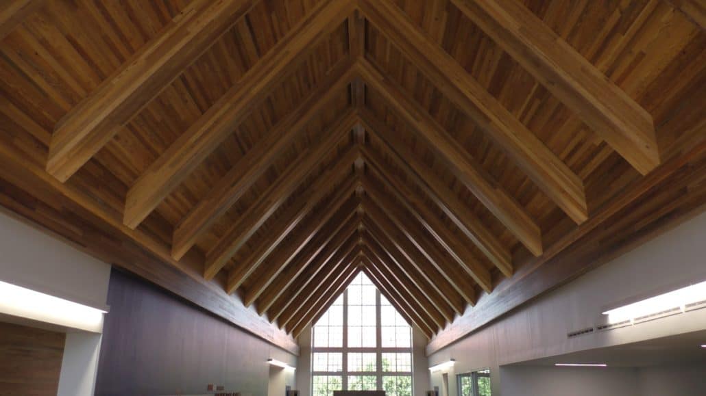 Here are a few preliminary snapshots of the gorgeous heartpine ceiling and paneling incorporated into the facility: