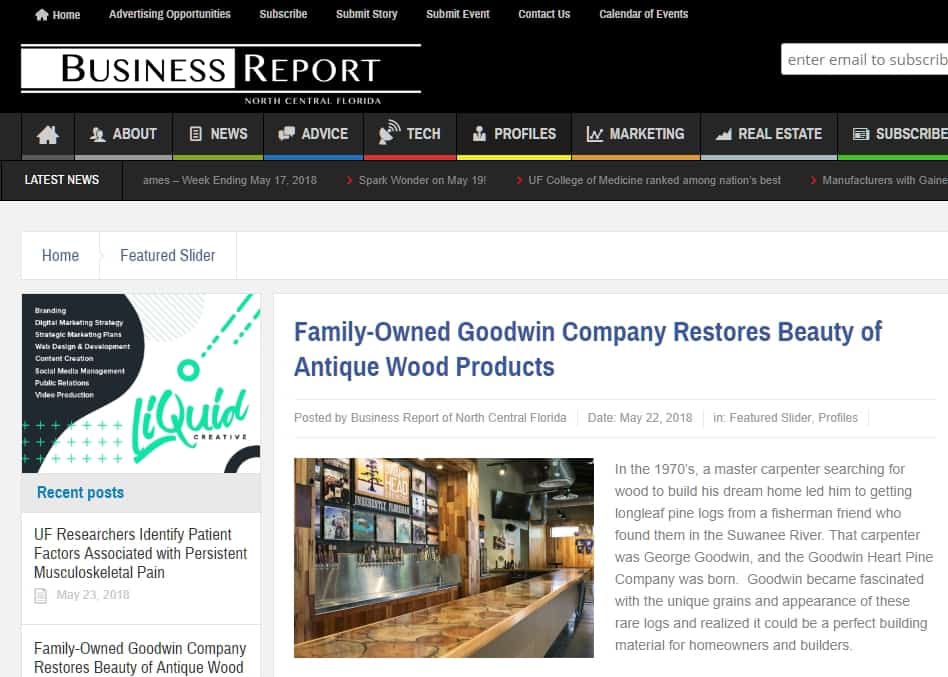 Special thank you to Tracy Wright and the Business Report of North Central Florida for writing and publishing an awesome feature on Goodwin Company. Check it out:
