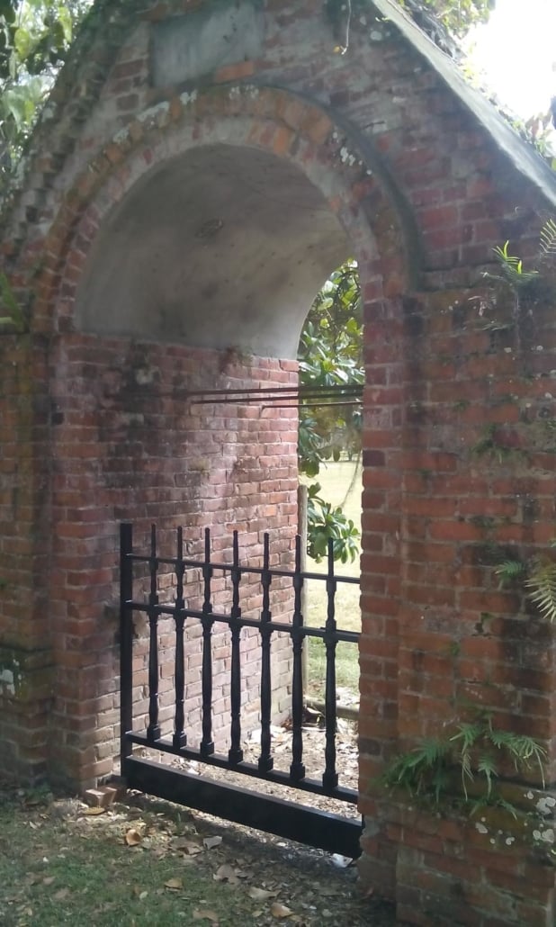 The recently restored historic Montgomery Wall in Micanopy, Florida was in need of an authentically re-created gate. The wall itself was built around 1895 to define the boundary of the estate and three homes. These homes were eventually lost in a fire and only the wall was left standing.