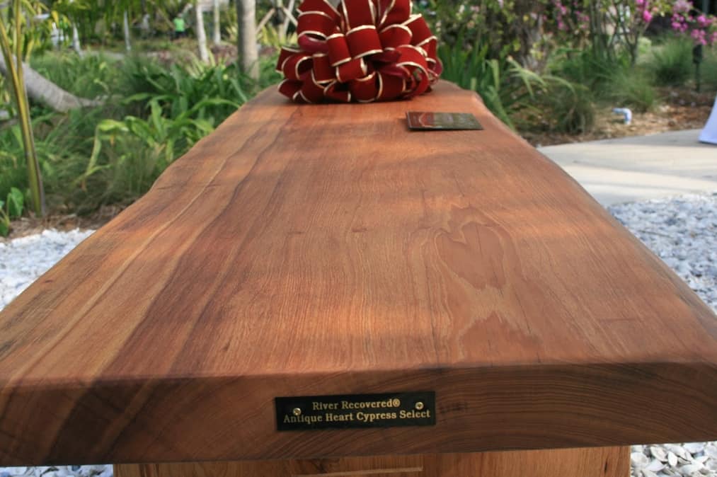 Naples Botanical Gardens commissioned Goodwin to build a bench – dedicated to John – for the gardens. Jeffrey Forbes and Dan Peterson crafted the River-Recovered® Antique Heart Cypress Select bench by hand. Here are the pictures of its evolution: