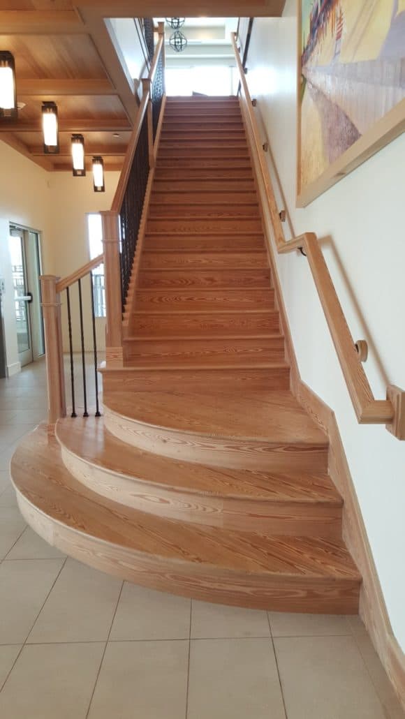 Architects and designers often specify Goodwin’s River-Recovered® and reclaimed antique wood in their sustainable designs. While reclaimed wood flooring, wood feature walls and wood ceilings and paneling are most popular, Goodwin’s antique wood is also often handcrafted into beautiful reclaimed wood stairs, stair parts, treads and moldings. Take a look at just a few applications where River-Recovered and reclaimed heart pine has been used: