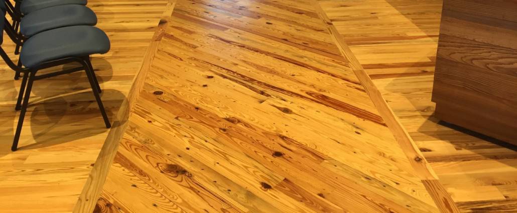And, that is where Goodwin’s reclaimed wood came into play. An antique cabin needs an antique reclaimed wood floor, so when we got the call for 1100 sq. ft., we were happy to oblige! The restored cabin – which now serves as the village commission chambers – officially re-opened last month. Richard Heisenbottle was the restoration architect and McKenzie Construction was the contractor.