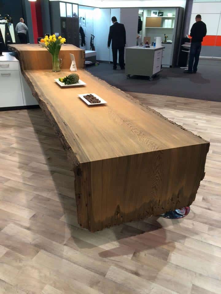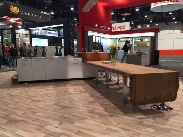 St. Petersburg, Florida craftsman, Michael Bright of Bright Wood Works, Inc. designed and built this gorgeous kitchen set for Hafele America Co’s booth at the 2016 Kitchen & Bath Industry Show (KBIS) happening right now in Las Vegas, NV. This stunning piece was handcrafted from one of our River-Recovered® Heart Cypress slabs.