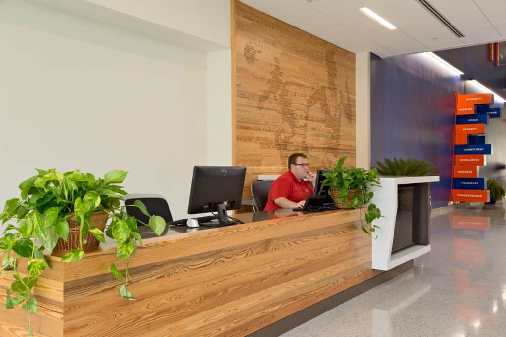 This is not the first time Goodwin’s wood has been used on the UF campus. Last year, the company provided their River-Recovered® Vertical Heart Pine, Legacy® Heart Pine and Curly Heart Pine for use in the Dasburg House, home to UF President Kent Fuchs, Ph.D. Goodwin collaborated with an exemplary team of professionals on the Hawkins Center project, including Parrish-McCall Constructors Inc. (project builder), DR Nickelson & Co. (wood installer), Beverly Frank of Gould Evans Architects (specifier of the River-Recovered® Heart Pine) and Chip Howard and his staff.